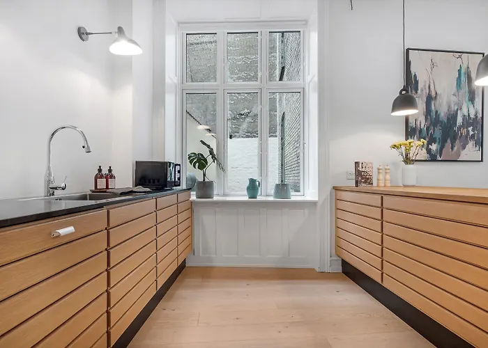 Geographischer Garten liegt in etwa 11 Gehminuten Entfernung von der Unterkunft. Museum auf Koldinghus liegt in einer Entfernung von 19 Fußminuten. Es gibt Tobbers Coffeebar und Baba's Pizza & Grill mit dänischen Gerichten, die sich in 15 Gehminuten Entfernung vom Apartment befinden.