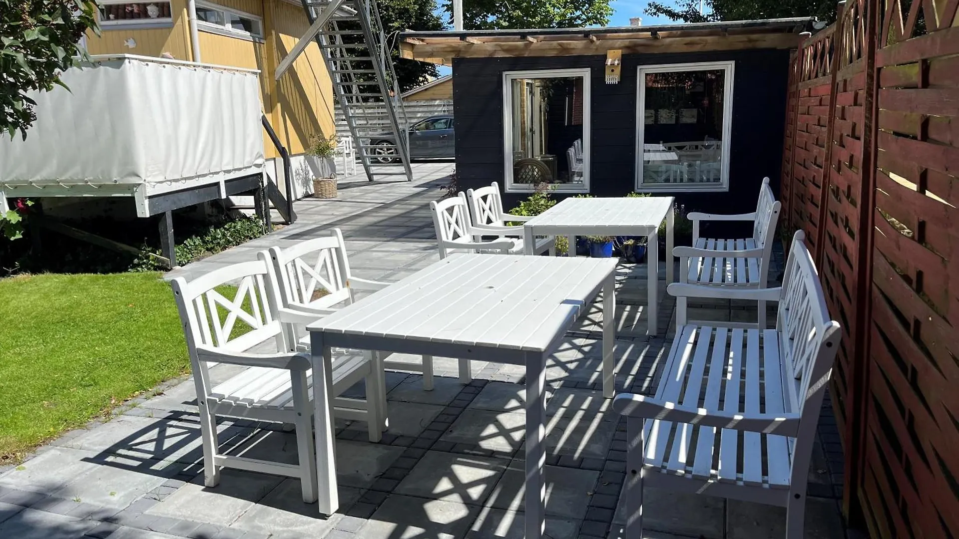 Der Gäste-Bereich im Freien ist eine Oase der Ruhe und des Genusses. Hier können Sie im Schatten der Bäume auf picnicartigen Tischen Platz nehmen und bei einem guten Buch in der Hand die Ruhe der Natur und das Plätschern der Wellen genießen. Unsere geräumigen, hellen Zimmer sind ausgestattet mit modernen Annehmlichkeiten wie einem Flachbildfernseher, einem Wasserkocher für Ihren nachmittäglichen Tee und einer voll ausgestatteten Gemeinschaftsküche, die mehr einem künstlerischen Atelier als einer Küche ähnelt. Alles hier ist darauf ausgelegt, eine kulinarische Symphonie zu komponieren, die Sie in jeden Winkel der skandinavischen Küche entführt.
